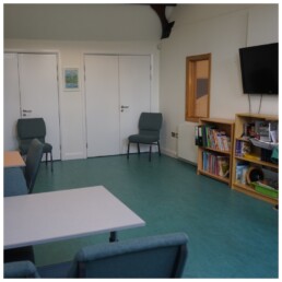 The Smith and Salway Rooms are lovely small rooms with arm chairs and a coffee table, ideal for counselling or one-to-one meetings, as well as a quiet place for office work or zoom meetings. The Smith Room also has a desk and office chair, the Salway Room also has an extra 2 arm chairs. Both rooms have a large Velux window giving lots of natural light. These two rooms are only accessible via steps.